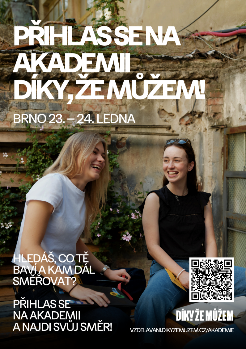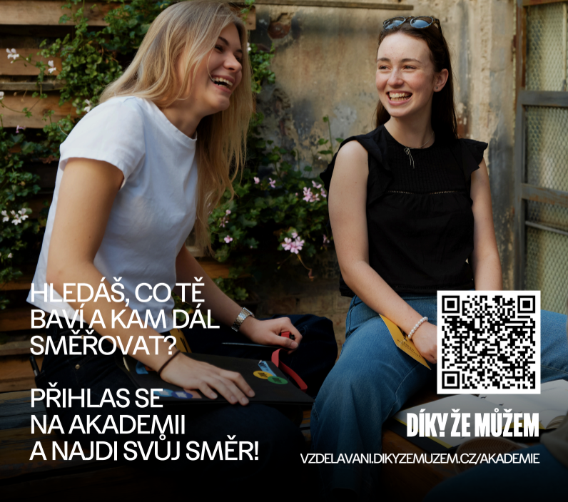 Přidej se a sbírej zážitky i zkušenosti. Akademie je určena středoškolákům a prvákům na vysokých školách. Akci zaštiťuje spolek Díky, že můžem. Přihlášku a další info najdeš na vzdelavani.dikyzemuzem.cz/akademie.